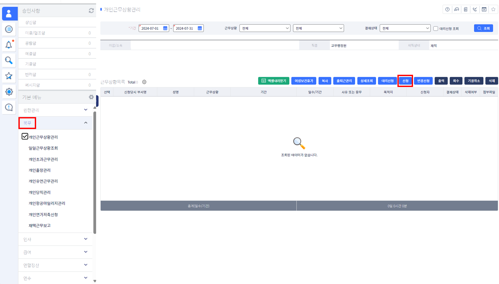 → 저장버튼을 누르면 '결재요청'버튼이 활성화됩니다.